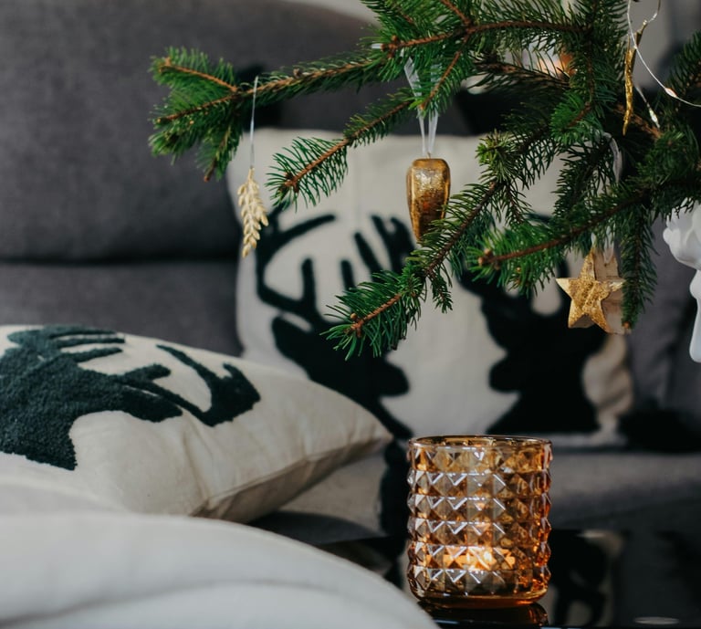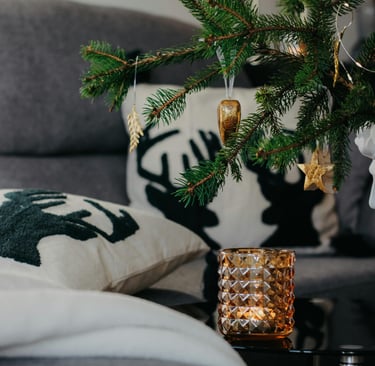 Scents and sounds complete the holiday vibe. Play soft Christmas instrumentals, jazz, or acoustic playlists. Add scents like pine, peppermint, or vanilla.